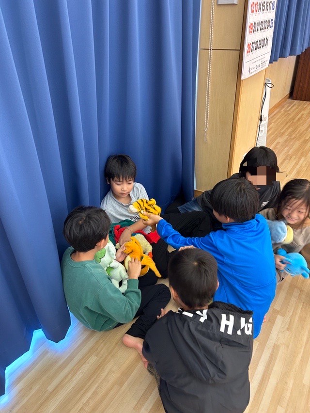 おのおのが持ってきたぬいぐるみを持ってくつろいでおります。
