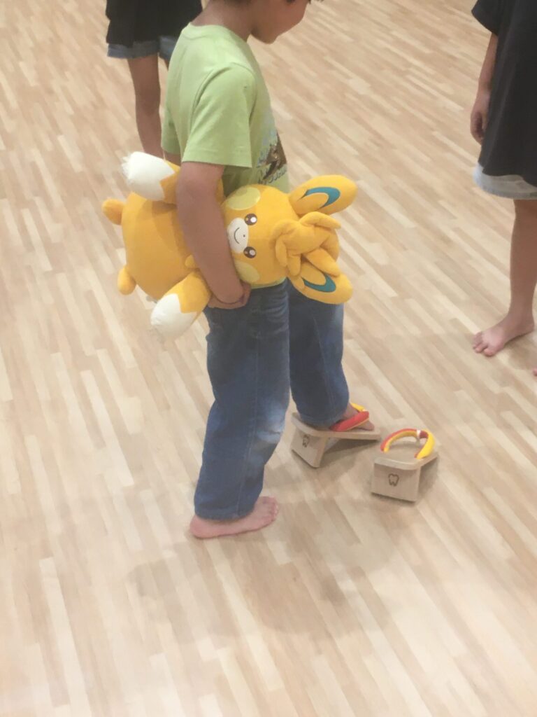 後ろ歯一本歯下駄などの少しスリルの有る状況にカラダを置くとカラダの使っていない部分が使える様になります。