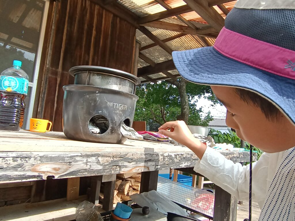 まるゐとオーナー坂本さんにお借りして、新聞紙だけで炊けるお釜でご飯を炊きました!