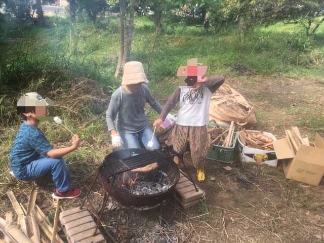 恒例のマシュマロ焼き、べっこう飴づくり、焼き芋、、、暑い、熱い、煙たい、けどやりたい!