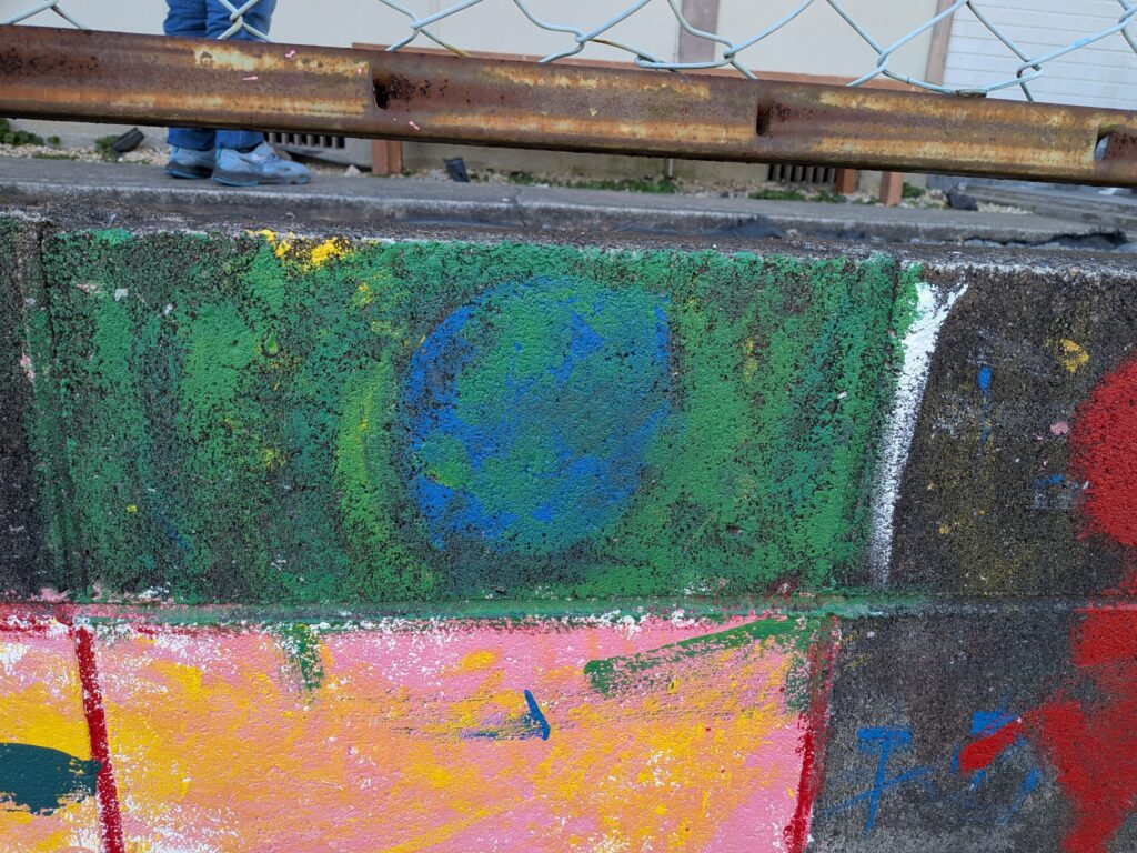 壁に絵を描きた~いと声があがると 突然、はじまる 外壁のペンキ絵 素敵な絵ができました♪