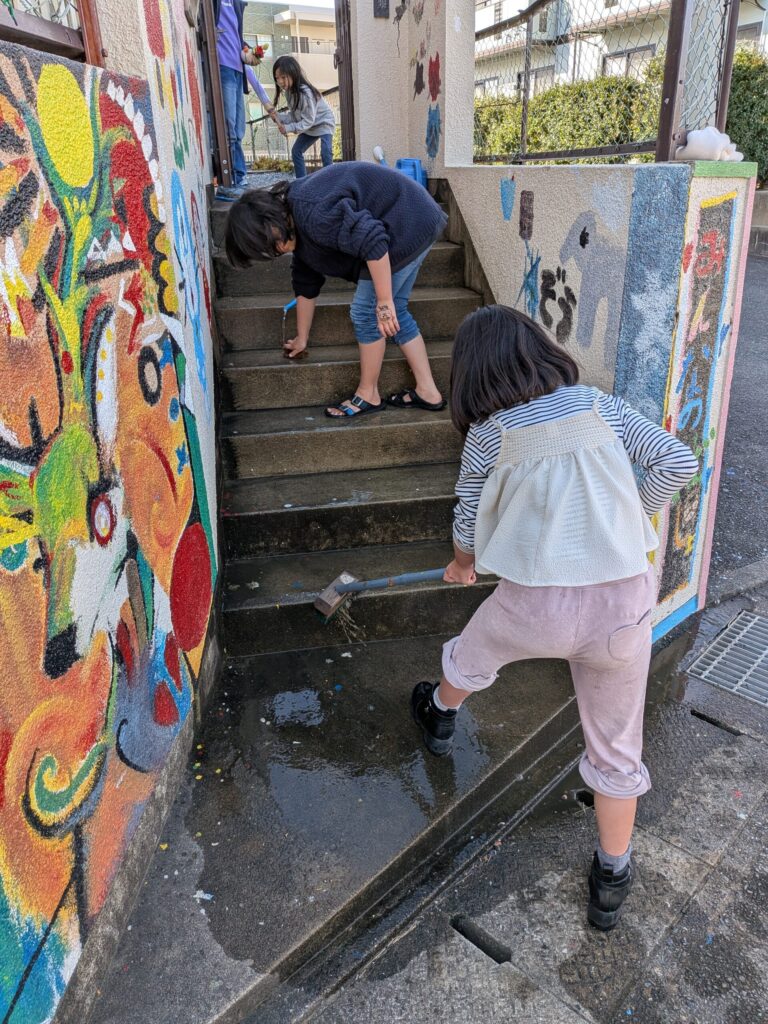 又別の日には・・水遊びから~外玄関の階段掃除をしてくれました~