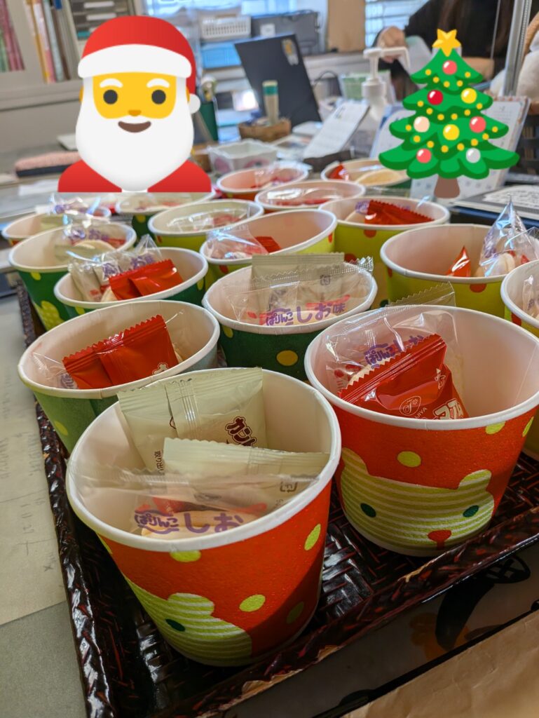 「クリスマスも近いので子どもたちが笑顔になれるように気持ちだけですが・・」と、お菓子もいれてくださってました!