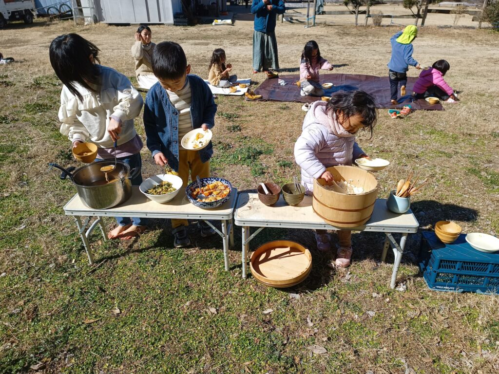 まほろばさんのお昼は何と現地配達! いっぱい遊んだ後、何度もお替りして食べてました ほのぼの♡