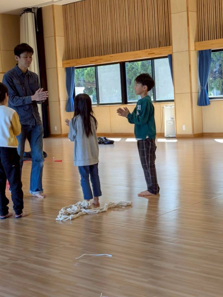 手拍子を合わせる事により物が動かしやすくなるワークを行いました、